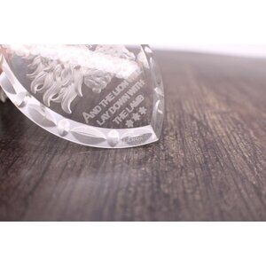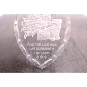 This exquisite Lenox Crystal Ornament beautifully captures the profound message from Isaiah 11:6, depicting the iconic image of the lion lying down with the lamb. Crafted from high-quality crystal, this ornament features intricate etching that brings the scene to life, symbolizing peace, harmony, and unity. The year 2000 is prominently displayed, marking it as a special keepsake from that era. The phrase "And the lion will lay down with the lamb" is etched below the imagery, serving as a constant reminder of this powerful prophecy. This elegant piece is perfect for holiday decorations, as a symbolic gift, or as a collectible item for enthusiasts of Lenox and inspirational art. The **Lenox** brand is renowned for its fine craftsmanship and enduring quality, ensuring this ornament will be cherished for years to come.