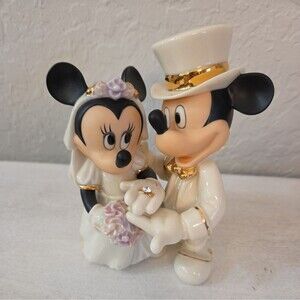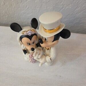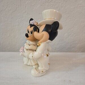 The Lenox Disney Showcase Collection Mickey Mouse Minnie's Dream Wedding Figurine is a charming collectible featuring Mickey Mouse and Minnie Mouse.