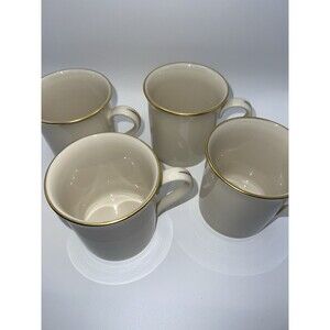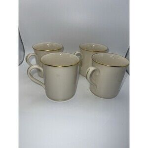 Lenox Eternal Restyled Mugs Stripe Handle Set Of 4 Gold Trim Made In USA