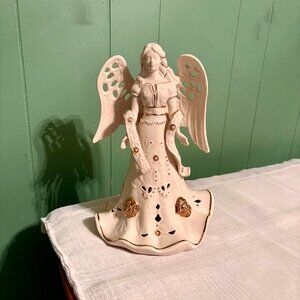 Lenox Florentine & Pearl Lit Angel Figurine 24K Gold Trim Retired Christmas