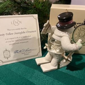 Lenox China Snowglobe Tree Ornament, Frosty Fellow with Certificate of Authenticity and box.