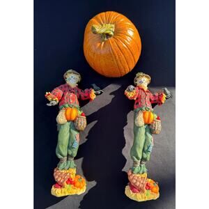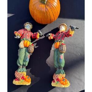 Lenox Harvest Scarecrow Pencil Figurine 12" Set Of 2 -LOOK Carefully Repaired!