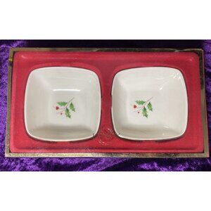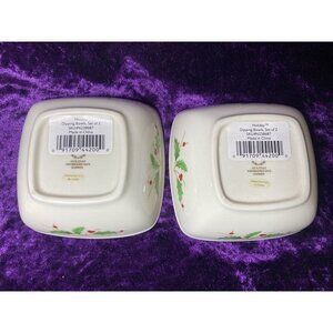 Lenox Holiday Christmas Dipping Bowl Set Of 2 Square Holly and Berry Design
