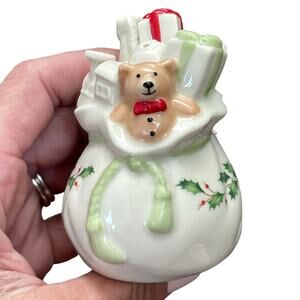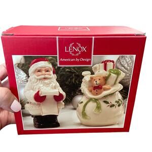 Lenox Holiday Christmas Salt & Pepper Shakers Santa & Toy Bag Checking It Twice