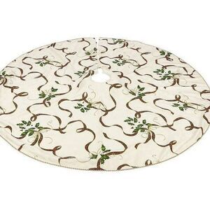 Lenox Holiday Christmas Tree Skirt 60" Diameter Holly & Ribbon