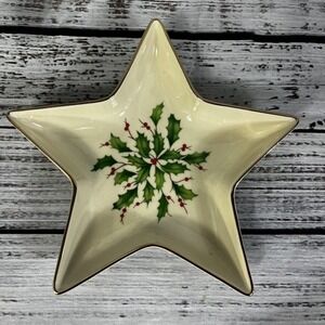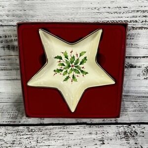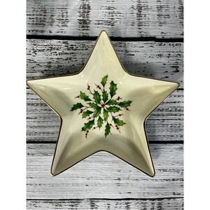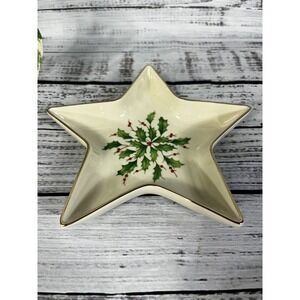 Lenox Holiday Dimension Collection Star Candy Dish Christmas Holly Berries