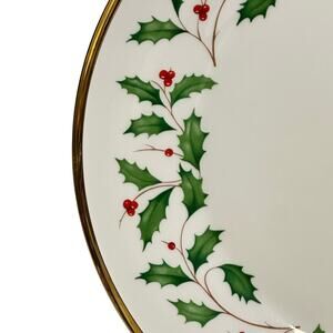 Lenox Holiday Dimension Dinner Plates Holly and Berry Ivory Gold Trim-Set of 4