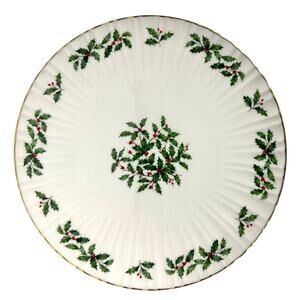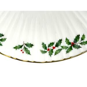 Lenox Holiday Dimension Holly Berries Gold Rim 10.5" Pedestal Cake Stand