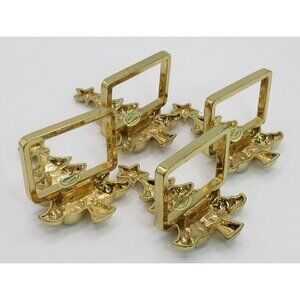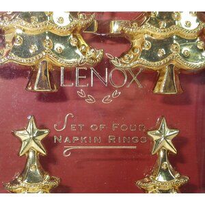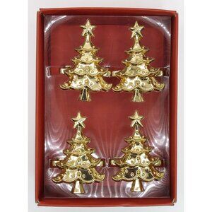 Lenox Holiday Gold Tone Christmas Tree Napkin Rings Set of 4 Glam Tablescape
