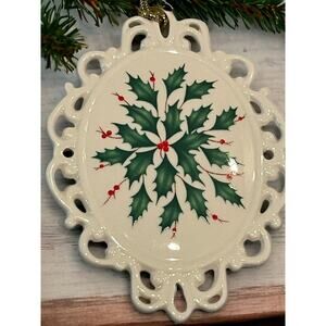 Lenox Holiday Medallion Christmas Ornament Holly Berries Pattern Porcelain 2014