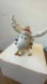 It is crafted from ivory porcelain with gold accents, including gold-painted hooves and a gold bow.