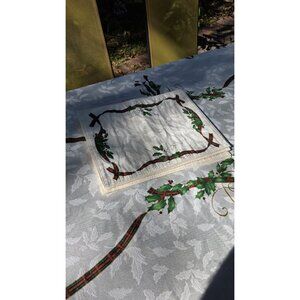Lenox Holiday Nouveau 60 X 139" Large Tablecloth w/ 6 Napkins Christmas Holly Ribbon Design