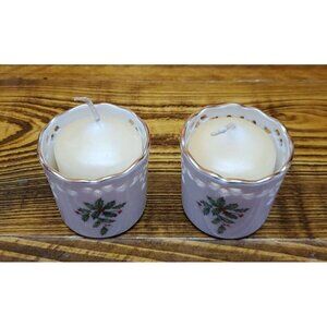 Lenox Holiday Pierced Votives 2 with candles Open Box.