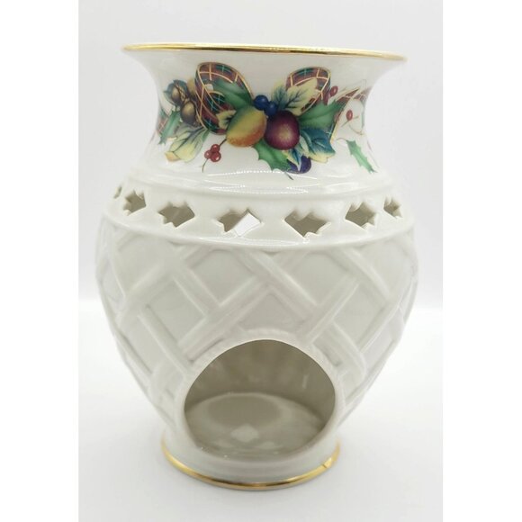 Lenox Holiday Tartan Fragrance Warmer Porcelain China With Gold Trim 5.5" Tall