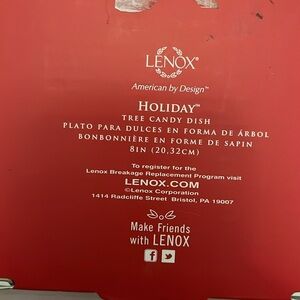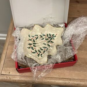 Lenox Holiday Tree Candy Dish NIB 8” Gold Trim Holly & Berries New in Box