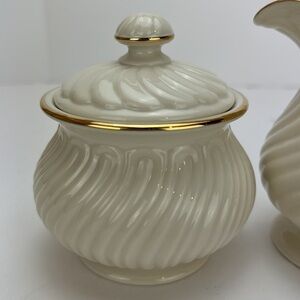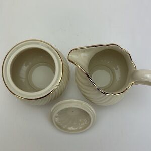 Lenox House Warming Collection Sugar Bowl With Lid and Creamer Set Ivory Gold