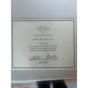The Lenox Irish Calf Figurine is an exquisite piece of artistry. Crafted from fine porcelain, it features hand-painted details and gold accents, embodying elegance and craftsmanship. The figurine's design reflects Lenox's dedication to quality and aesthetics, making it a valuable addition to any collection.New in box.