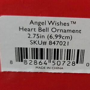 Lenox Ivory Angel Wishes Heart Bell With Gold String Xmas Ornament 847021 MCM