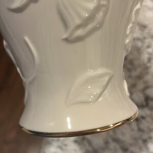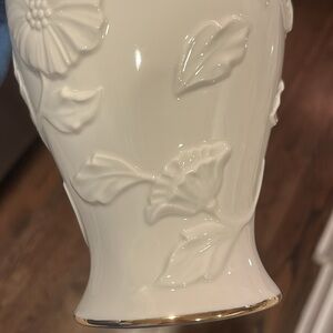 Lenox Ivory Embossed Poppy Floral Design Vase. 24K gold trim around the base.