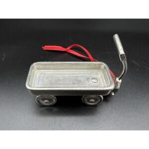 Lovely pair of vintage Lenox Kirk Stieff pewter ornaments. One is a toy wagon (measures approximately 3” long, 2” tall and 1.25” wide) and the other is a lawn mower trike (measures approximately 2” tall, 2.25” long and 1” wide). Both are in good condition. Does not come with original box. Made in the USA.