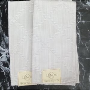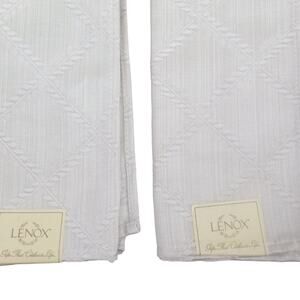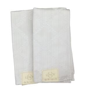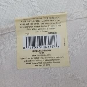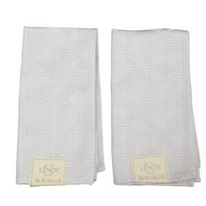 Lenox Laurel Leaf Dinner Napkins 18"x 18" Pair. Silvery white platinum color. Cotton Poly Blend. Old stock with tags. Unused. No rips tears or stains.