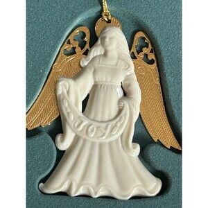 1994 Lenox Porcelain and gold tone “Joy” Angel Christmas ornament with box
