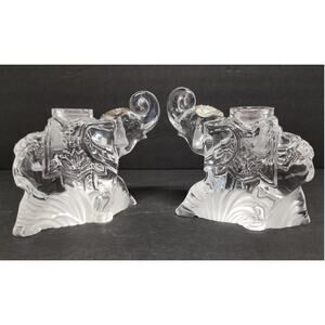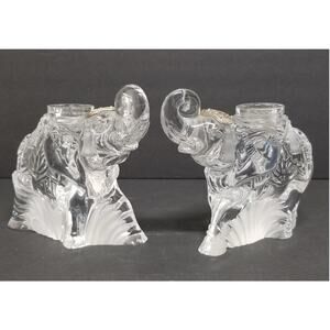 Lenox Lead Crystal Elephant Candlestick Holders Pair