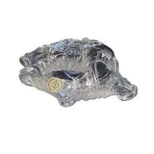 Add a touch of elegance to your home decor with this beautiful pair of Lenox lead crystal elephant candlestick holders! These stunning pieces feature a gold-tone headdress, adding a luxurious accent to the crystal. The bottom of each candlestick holder is signed by Lenox, ensuring its authenticity and quality. These candlestick holders are in excellent condition, ready to brighten up any space.