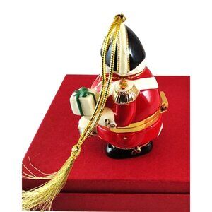 This Lenox Marching Monarch Soldier trinket box ornament combines festive charm with functionality. Handcrafted in porcelain with gold accents, it offers a unique holiday display piece.