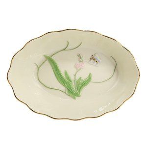 Lenox NIB Bone China Butterfly Candy Dish Ivory Porcelain 24K Gold Trim Oval