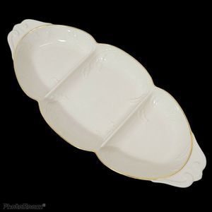 Lenox Off White Ceramic Holiday Heirloom 3 Part Relish Server Tray China Platter