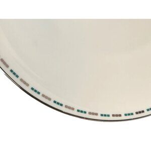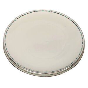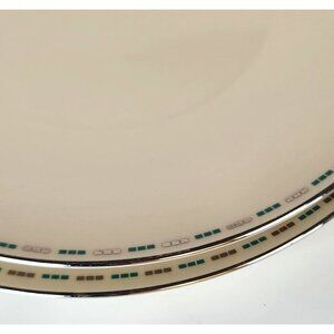 These Lenox Oslo H520 dinner plates, crafted in the USA, feature a refined design with elegant green and blue accents. Ideal for formal dining settings.