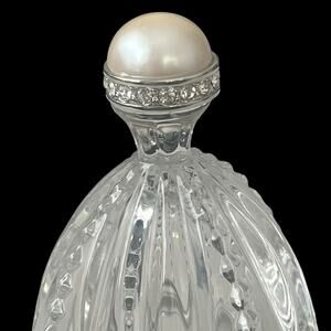 The Lenox Pave Jewels Diamonds & Pearls Royal Crystal Egg Trinket Box is a luxurious and elegant collectible piece that adds a touch of glamour to any vanity or dressing table. This vintage trinket box features a delicate design of diamonds and pearls set in royal crystal, making it a stunning addition to any collection. Perfect for storing small treasures or keepsakes, this box exudes a touch of old-world charm and sophistication.