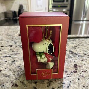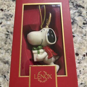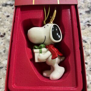 Lenox Peanuts Snoopy With Gift and Golden Antlers Ornament 4.5". New in box.