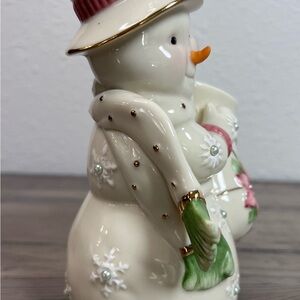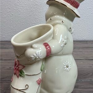 Lenox “Petals & Pearls” Snowman Christmas Poinsettia figurine/bud vase Approx 6”