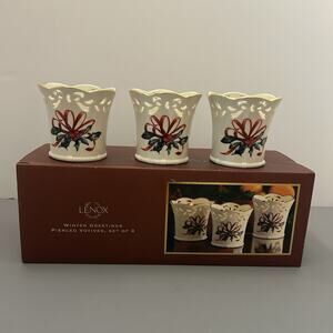 Lenox Pierced Votives Winter Greetings Set Of 3 w/Tea Lights