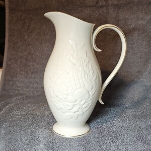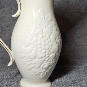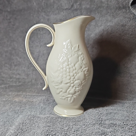 Lenox. Fruits of Life Pitcher. Vintage. Collectable. Little less than 9" tall. Fine ivory china.1990.