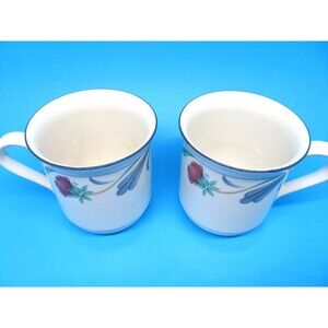 Lenox Poppies on Blue Coffee Mugs 3 3/4" Bundle of 2