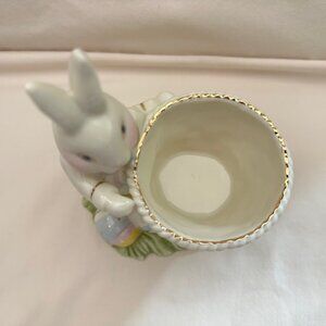 Lenox Porcelain Bunny Rabbit with Basket Candy Dish or Candle Holder