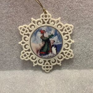 This is a Lenox porcelain ornament a pierced or filigree snowflake