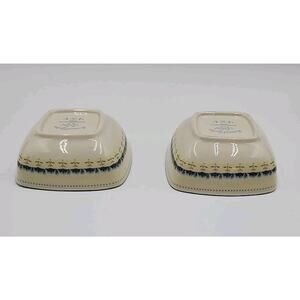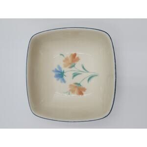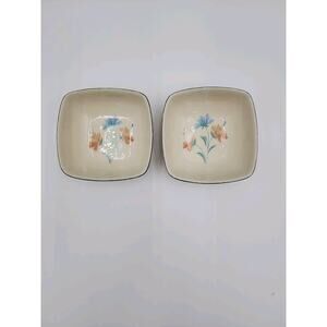 Elevate your dining experience with this exquisite set of two Lenox Provencal Garden rounded square dipping bowls. The Provencal Garden Pattern was produced from 2003-2006. The beige ceramic and glass bowls feature a beautiful flower theme, perfect for all occasions. Measuring 4 inches in length and width, these vintage origin al bowls are a part of the Lenox collection.