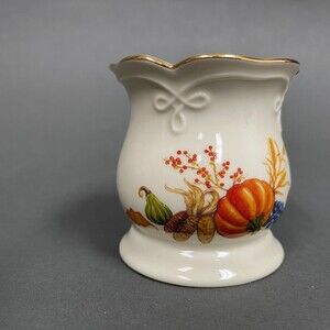 Lenox Pumpkin Vegetables Beige Gold Trim Vase Candle Holder 3 1/4" High
