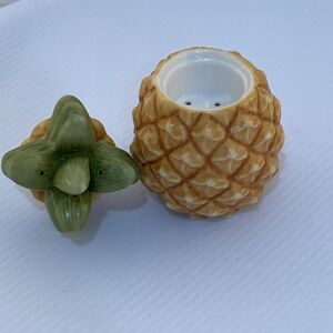 Lenox Rare Vintage Pineapple Salt & Pepper Shaker Tan & Green Excellent Condition