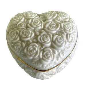 Lenox Rose Heart Trinket Porcelain Box W/ 24K Gold Trim