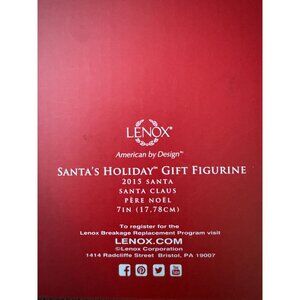 In the heart of a winter wonderland, this Lenox Santa figurine stands resplendent. Crafted with care, Santa holds a beautifully wrapped gift, his eyes twinkling with holiday cheer. Adorned with holly, this porcelain piece captures the essence of Christmas, making it a cherished keepsake for generations.