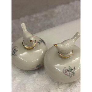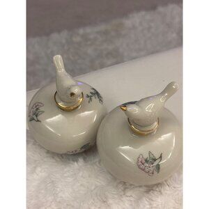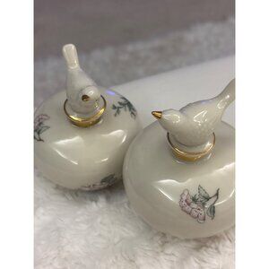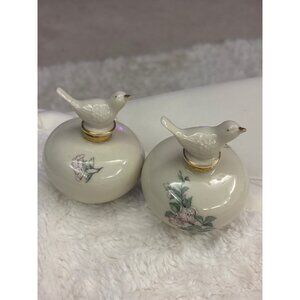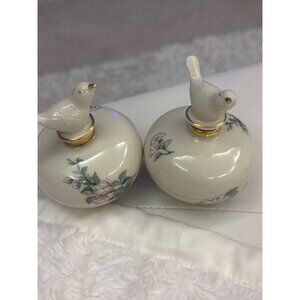 Lenox Serenade™ Porcelain Perfume Bottles Pair Bird Stoppers, 24k Gold Trim,USA