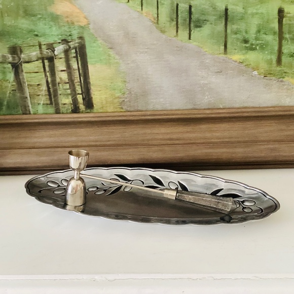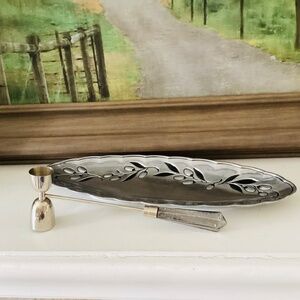 Lenox Silver Oval Tray Olive Branch W/ Scalloped Edge And Candle Snuffer Decor