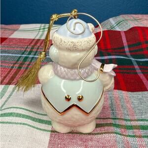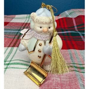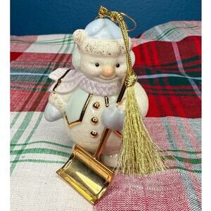 Gorgeous pastel Lenox Snowman with golden shovel and details