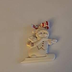 Add a touch of holiday cheer with this charming snowman ornament, featuring a colorful striped hanger. Perfect for your festive decor.