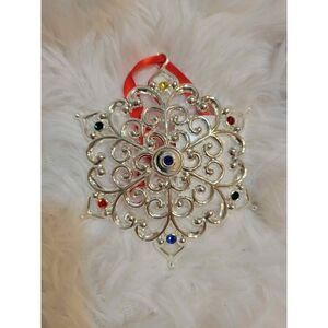 Lenox Sparkle and Scroll Holiday Ornament Snowflake Multicolor Crystals on Silver 3.9 inches